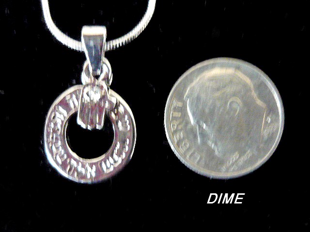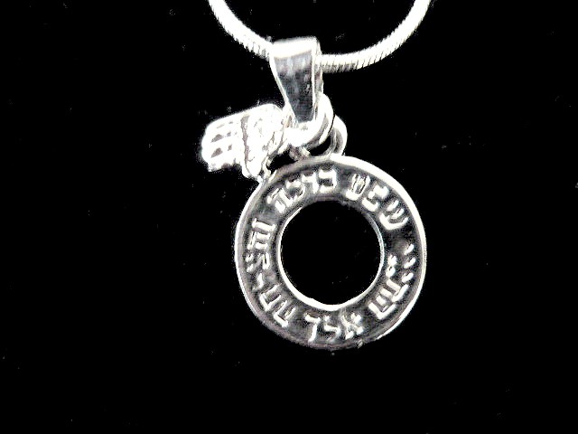 This meaningful TNENI necklace, texture imprinted on a circular pendant symbolic of eternity, totality and wholeness, reads in Hebrew TNENI (Give me), SHEFA (Abundance), BRACHA (Blessing ) HATZLACHA (Success) and Aleph Lamed Daleth (One of the 72 names of G-d) that is said to offer the wearer protection and luck . A little Hamsa symbol of Divine and good luck is dangling on the front of the pendant.