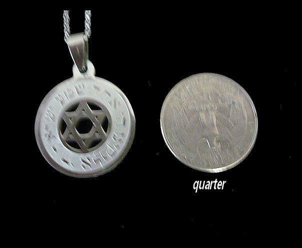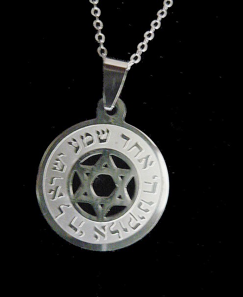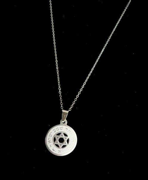 This meaningful unisex stainless steel necklace, of the Shema Israel prayer, is engraved on a circular pendant , symbolic of eternity, totality and wholeness, and reads in Hebrew "Shema Israel Adonai Elokeinu Adonai Echad" . , (Hear O Israel, the Lord is our God, the Lord is one) . It features in the middle a Star of David, this symbol represents the connection of the soul with the Creator through study and learning the teachings of Kabbalah. Shows great strength and perseverance .